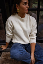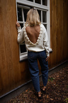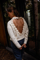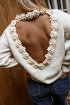Bring a touch of charm to your look with the Ecru Flory Sweater. Designed with an open back framed by delicate flowers, a round neckline, and long sleeves, it’s the perfect mix of cozy and romantic.