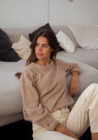 Love this thick, cozy sweater. It’s warm and comfortable and a beautiful color. Buttons on the sleeves add an elegant touch.