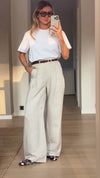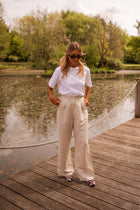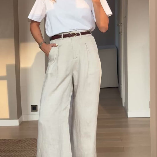 Easy going yet refined, the Beige Linen Romuald Pants are your warm-weather staple. Crafted from breathable linen, these fluid trousers offer a relaxed fit with functional side pockets and classic belt loops. Unlined but not transparent, they strike the perfect balance between comfort and polish.
