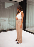 The Beige Victor Pants deliver a sharp, refined silhouette with everyday ease. Structured pleats give the design a tailored touch, while belt loops and practical side pockets keep the look functional. Finished with a secure fastener-and-zipper closure, these trousers offer a clean, streamlined fit ideal for work or polished casual outfits.