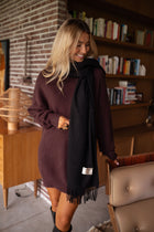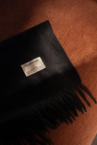 - Wrap yourself in luxury with the Black Cashmere Ronald Scarf. Made from ultra-soft cashmere, this timeless black scarf brings warmth and elegance to any look. Finished with refined fringed edges, it’s a versatile accessory that pairs beautifully with casual or formal outfits. Perfect for adding a sophisticated touch to your winter wardrobe.