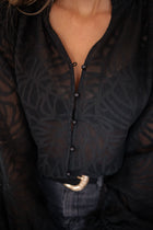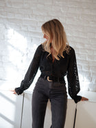The S is slightly loose but once tucked into high waisted trousers or jeans, this blouse is beautiful! The perfect amount of sheer soft cotton/lacey material. Will be nice with a black lace bra or bralette and some gold accessories. Can’t wait to wear it!