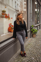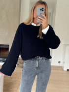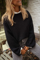 - Elevate your style with the Black Wallas sweater. Experience the comfort of the soft fabric and embrace the trendy look with slightly flared sleeves and a classic crewneck.