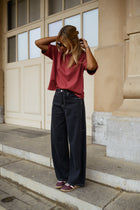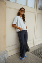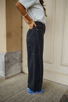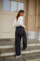 A fresh silhouette that redefines everyday denim, the Dark Blue Conny Jeans feature a wide-leg cut with a soft barrel effect that adds volume and movement. The lightweight, twill fabric keeps them easy and breathable, while clean topstitching enhances the shape without overwhelming it. With a relaxed fit and practical side and back pockets, the Blue Conny Jeans deliver comfort with a distinctive, modern edge.
