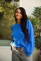 - The Blue Wallas Sweater boasts slightly flared sleeves, a cozy crewneck, and a soft and comfortable fabric. Experience the ultimate in comfort and style with this must-have sweater!