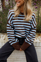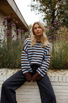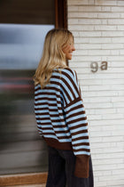 Effortlessly stylish, this striped sweater combines rich brown and blue tones in a relaxed silhouette that flatters every frame. The round neckline and extended sleeves deliver timeless appeal, while the gently oversized fit ensures all-day comfort without sacrificing sophistication. Perfect for layering or wearing solo, the Emilie Sweater transitions seamlessly from casual weekends to polished weekday looks.