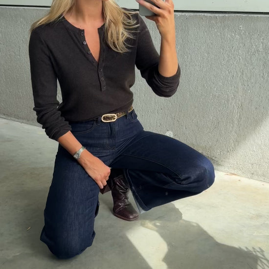 Classic yet refined, the Brown Soka Sweater features a round neckline, and seven-button neckline. This henley sweater has a slightly fitted cut and long sleeves, perfect for layering. This timeless piece transitions seamlessly from workdays to weekends.