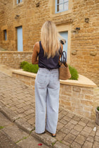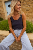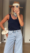 Cool and uncomplicated, the Dark Blue Bronx Top is made for effortless dressing. The sleeveless shape and classic crewneck keep it timeless while the soft linen-effect fabric gives it a breezy, natural feel. Its relaxed fit and deep hue make it an easy match for both casual and refined looks.