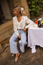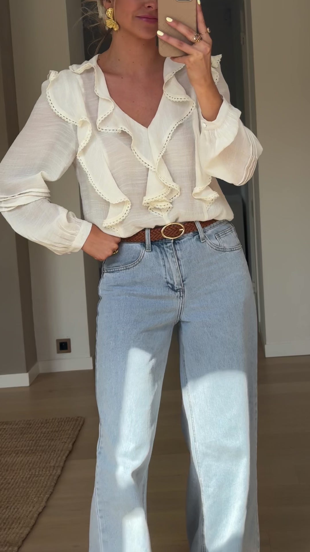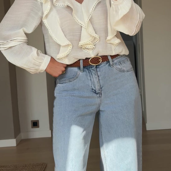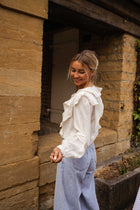 The Ecru Sophie Blouse is soft, airy, and full of charm. It features a flattering V-neckline with delicate ruffles along the bust, giving it a romantic feel. The slightly sheer fabric flows beautifully, while the unlined design and balloon sleeves keep it light and breezy. A refined piece that adds elegance to any warm-weather look.