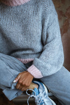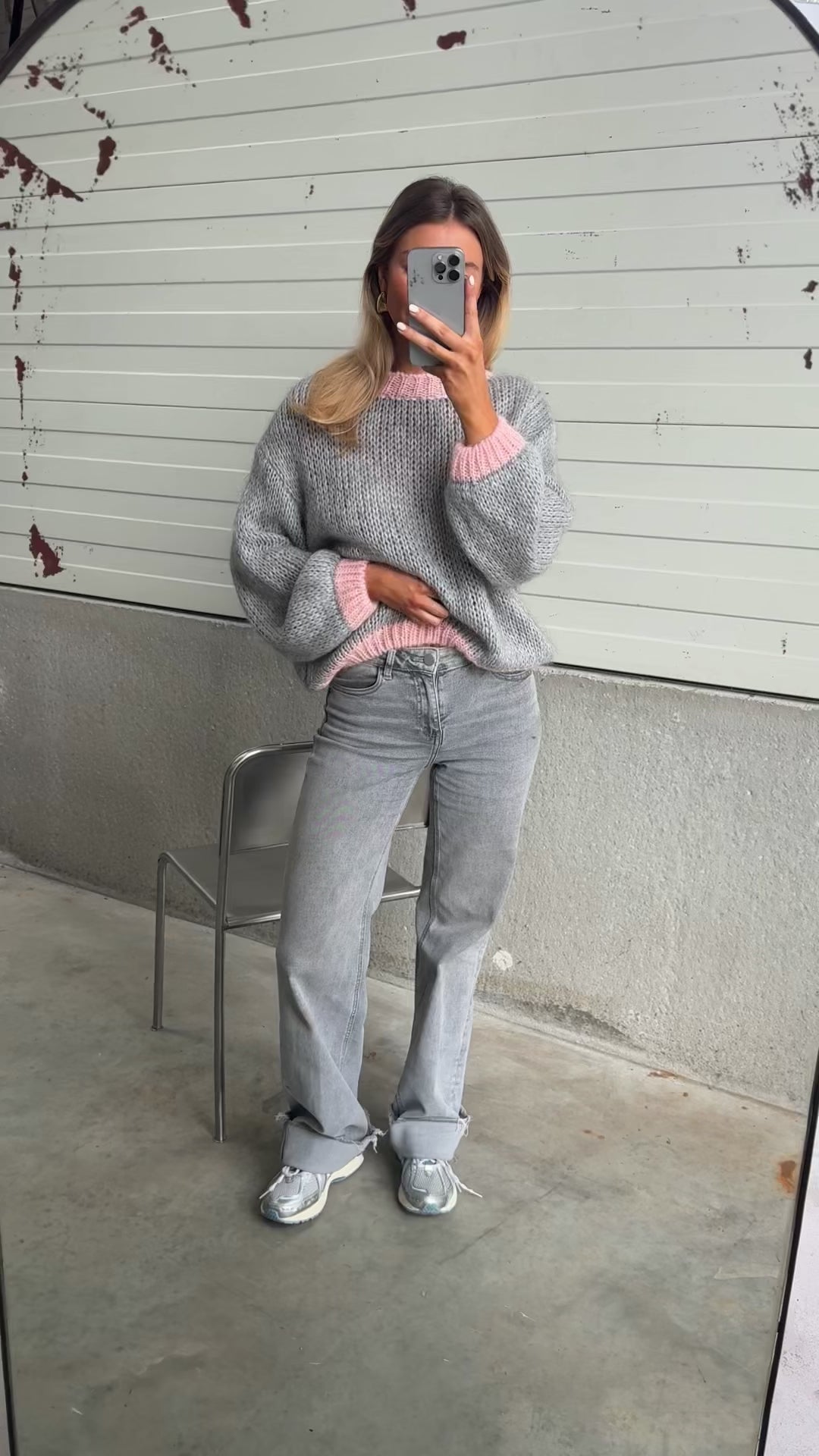The Grey Suzanne Sweater adds a playful twist to a cozy classic. Designed with long sleeves and a slightly loose fit, it’s finished with pink edges on the collar, sleeves, and hem for a subtle pop of contrast. A versatile piece that’s equal parts chic and comfortable.