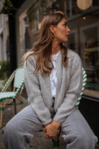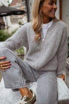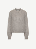- Add some flair to your wardrobe with the Grey Calista Cardigan, featuring a crewneck design, sleek silver zipper, and a stylishly cropped fit.