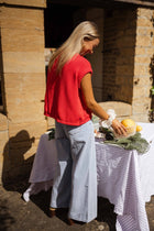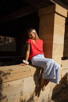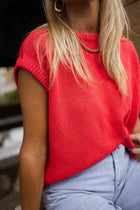 Bold and minimalist, the Red Kathia Sweater offers a sleek sleeveless design with a classic crewneck. Perfect for layering or wearing on its own, this vibrant piece adds a pop of color and effortless style to your wardrobe.