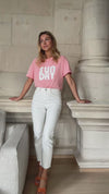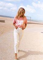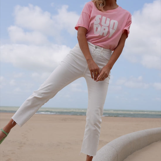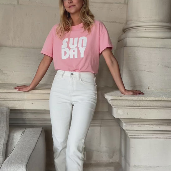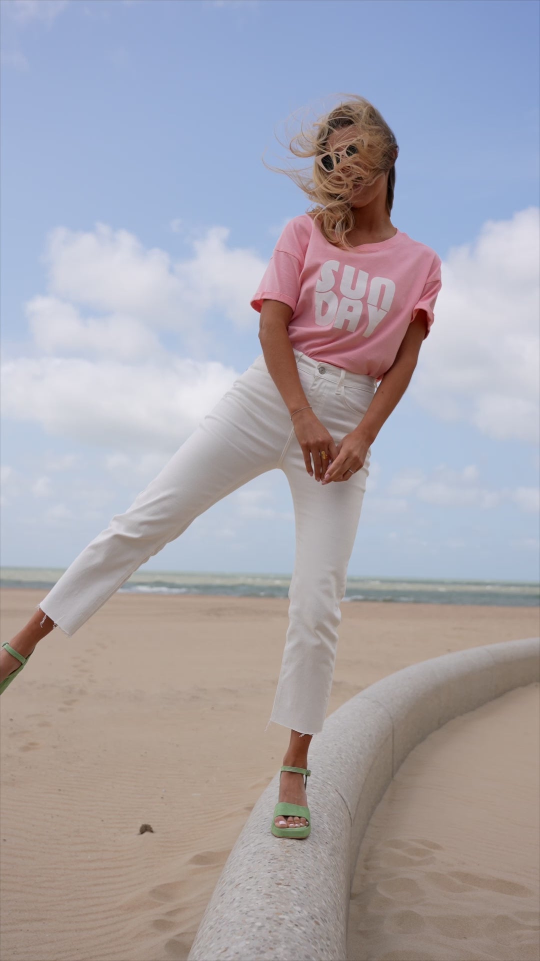 - Our model wears the Baby Blue Tilio Top and Pink Sunday T-Shirt
