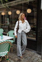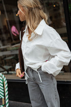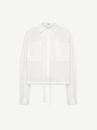 - Flaunt your unique style with the White Hanae Shirt. This stylish piece features long sleeves, a buttoning tab, and lace to tie at the bottom. The slightly cropped design adds a modern touch, while the 2 front pockets provide a functional yet chic detail.