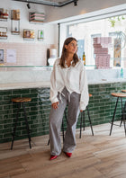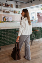 - Our models are also wearing the Light Grey Celestine Jeans and the Brown Suede Pascal Bag