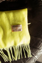 - Brighten up any look with the ultra-soft Yellow Cashmere Ronald Scarf. Made from luxurious cashmere in a bold highlighter-yellow hue, this scarf combines cozy warmth with vibrant style. Finished with elegant fringed ends, it’s the perfect accessory to elevate your cold-weather wardrobe.
